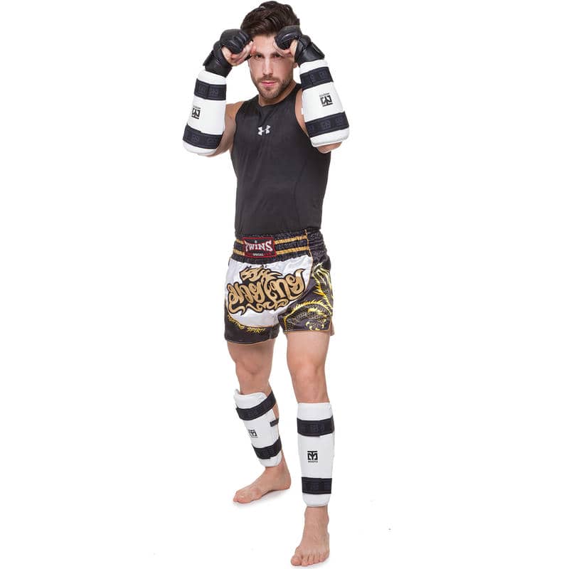 Захист для гомілки потрібний для пом'якшення больових відчуттів, якщо ви завдаєте удари або ставите блок ногою. Вона допомагає уникнути розсічень шкіри та гематом, входить до переліку обов'язкового захисного екіпірування для даного виду спорту. Щитки для передпліч виконують практично таку ж функцію, що і захист для ніг. Вони потрібні для пом'якшення ударів, наприклад коли суперник б'є ногою і необхідно поставити блок.