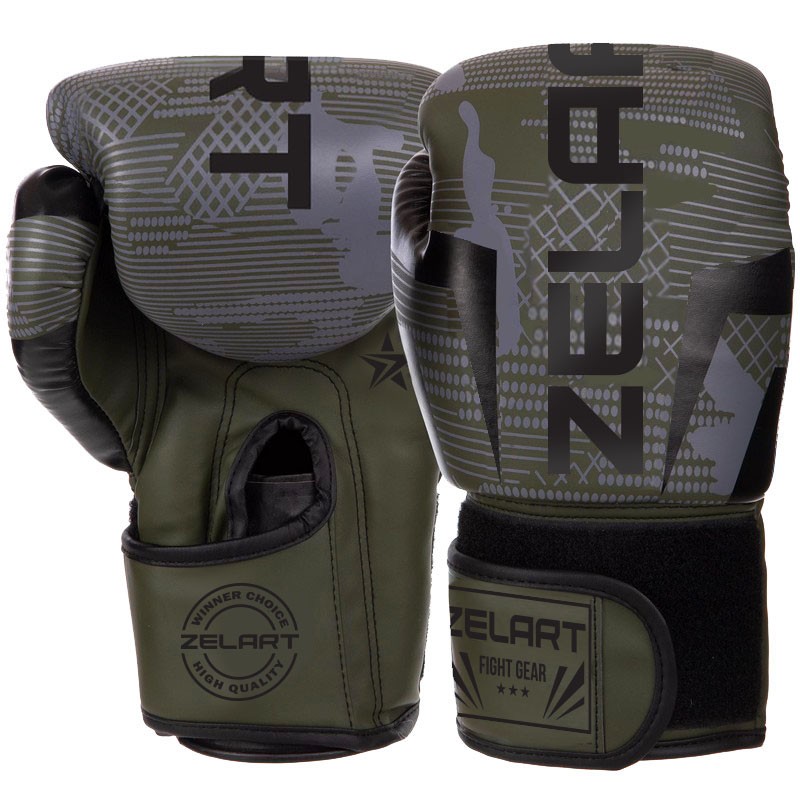 Рукавички боксерські Zelart 14oz, чорний-зелений, код: BO-2533_14BKG