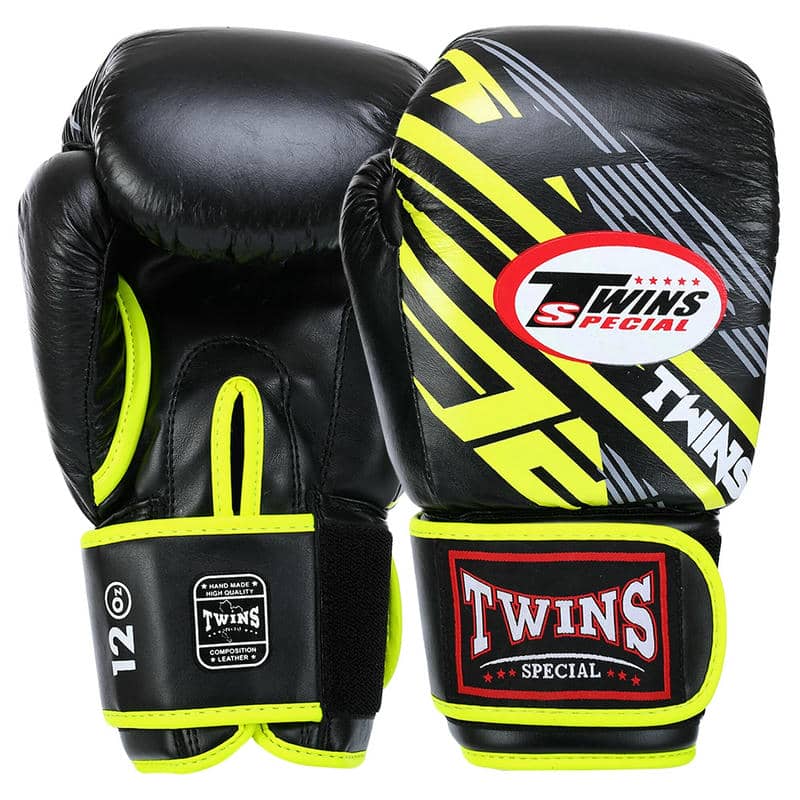 Боксерські рукавиці шкіряні Twins 14 унцій, чорний-салатовий, код: BO-5058_14LG
