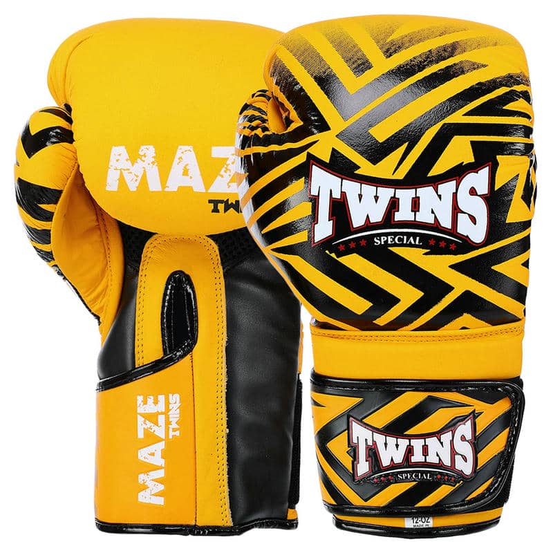 Боксерські рукавиці шкіряні Twins 12 унцій, жовтий, код: BO-5067_12Y