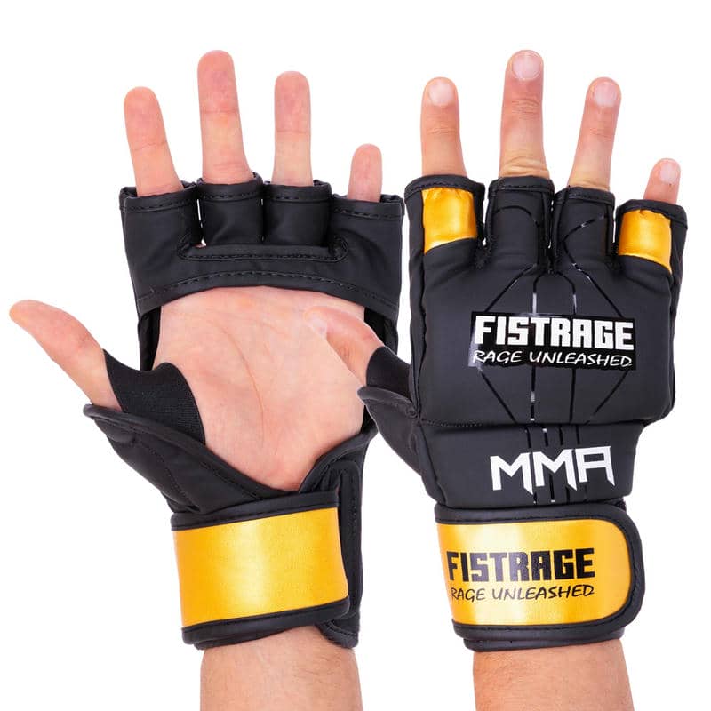 Рукавиці для змішаних єдиноборств MMA Fistrage L, чорний-золотий, код: VL-4300_LBK