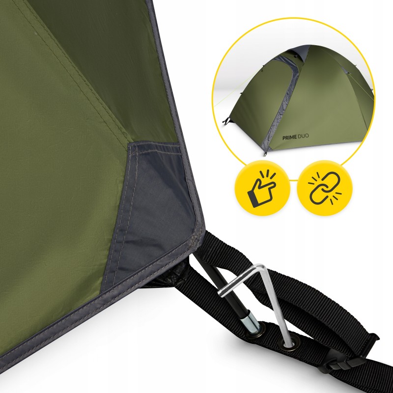 Намет туристичний від польського бренду Mountain Goat - це надійний супутник для двох осіб, які цінують комфорт, безпеку та функціональність під час подорожей на природу. Він ідеально підійде для кемпінгу, походів у гори, риболовлі чи спонтанного вікенду на лоні дикої природи. Завдяки продуманій конструкції з двома окремими входами й місткими тамбурами, кожен отримає особистий простір і зручність. Цей намет дозволить не тільки сховатись від дощу чи вітру, а й насолоджуватись відпочинком навіть у складних погодних умовах. Невелика вага, швидке встановлення та вентиляція, яка справді працює - усе це робить модель Prime Duo оптимальним вибором як для досвідчених мандрівників, так і для новачків.