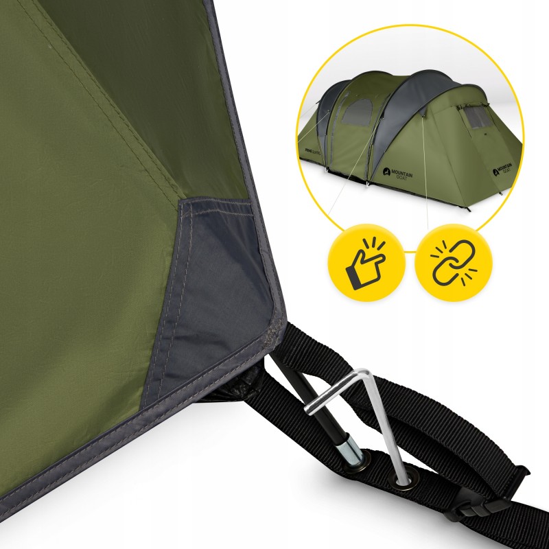 Якщо ви шукаєте намет, що не йде на компроміси між місткістю, надійністю та зручністю - Mountain Goat Prime Quatro стане вашим оптимальним вибором. Він підходить для активного сімейного відпочинку, фестивалів, подорожей і кемпінгів будь-якої складності. Замовляйте вже сьогодні - і відкривайте для себе світ природи з комфортом, який заслуговує кожен мандрівник.