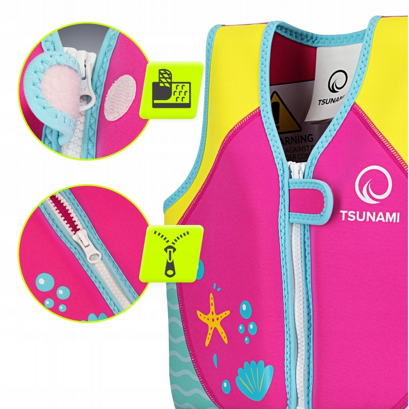 Жилет для плавання від польського бренду Tsunami - це надійний помічник для малюків віком 2-3 років, які лише починають знайомство з водою. Створений для безпечного та комфортного навчання, цей жилет допомагає дитині підтримувати рівновагу, залишатися на поверхні води та поступово опановувати навички плавання. Він стане незамінним під час відпочинку біля басейну, на пляжі чи біля озера. М'яка текстура, приємний крій і яскравий дизайн спонукають дитину з радістю його носити, а батькам дають спокій за безпеку своєї малечі під час водних розваг.