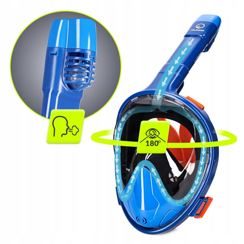 Повнолицьова маска для снорклінгу від польського бренду Tsunami відкриє для вас таємниці підводного світу! Ця інноваційна модель створена для дорослих та підлітків, які прагнуть комфортно та безпечно досліджувати морські глибини. Панорамне скло на 180° забезпечує неймовірний огляд без "сліпих зон", а герметична конструкція дозволяє вільно дихати носом і ротом одночасно - жодних незручностей, як від класичної трубки! Технологія Dry Top автоматично блокує воду при зануренні, а м'який силіконовий обтюратор щільно прилягає до обличчя, запобігаючи протіканню. Насолоджуйтесь плаванням на поверхні чи під водою, спостерігаючи за рибами у природному середовищі - з Tsunami кожне ваше плавання стане захопливою пригодою!