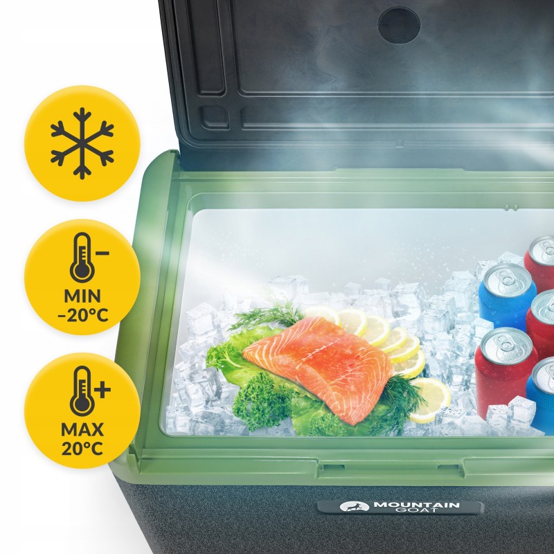 Туристичний компресорний холодильник Liberty від польського бренду Mountain Goat будь-яку подорож перетворить у комфортну мандрівку. Цей потужний апарат у стильному дизайні - ваш персональний помічник під відкритим небом. Він відмінно підходить для кемпінгу, рибалки, подорожей на авто чи пікніків, гарантуючи ідеальну температуру продуктів (від -20°C до +20°C). Забудьте про зіпсуту їжу чи теплі напої: Mountain Goat швидко охолодить все від м'яса до напоїв, працюючи від авто чи розетки. Інноваційний механізм дверцят з двостороннім відкриттям забезпечує швидкий доступ до провізії, а антивібраційна конструкція та USB-порт для зарядки гаджетів роблять з нього незамінне пристосування для справжніх шукачів пригод!