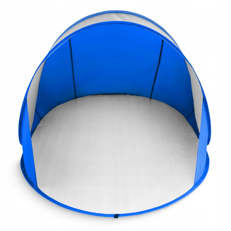 Конструкція намету 4Fizjo Pop-Up поєднує в собі практичність і надійність. Купол виготовлений зі 100% поліестеру, що не вбирає вологу й швидко сохне, а зовнішнє покриття з фільтром UV 30+ ефективно захищає від ультрафіолету, створюючи затінок всередині. Гнучкий каркас зі скловолокна забезпечує стійкість навіть на м'яких поверхнях. Розміри у розкладеному вигляді: 195 x 120 x 85 см - дозволяють комфортно розміститися одному-двом дорослим або дорослому з дитиною. У складеному стані діаметр намету становить лише 62.5 см, товщина - 2.5 см, а вага - близько 1 кг. У комплекті передбачено чотири кілочки для фіксації, сумку для зберігання та чохол для аксесуарів - усе для максимальної зручності під час транспортування.