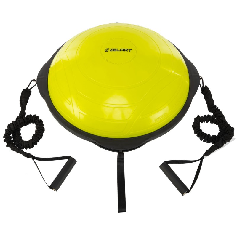 Балансувальна платформа напівсфера Bosu з еспандерами Mdbuddy 70 см, лимонний, код: FI-5418-S52