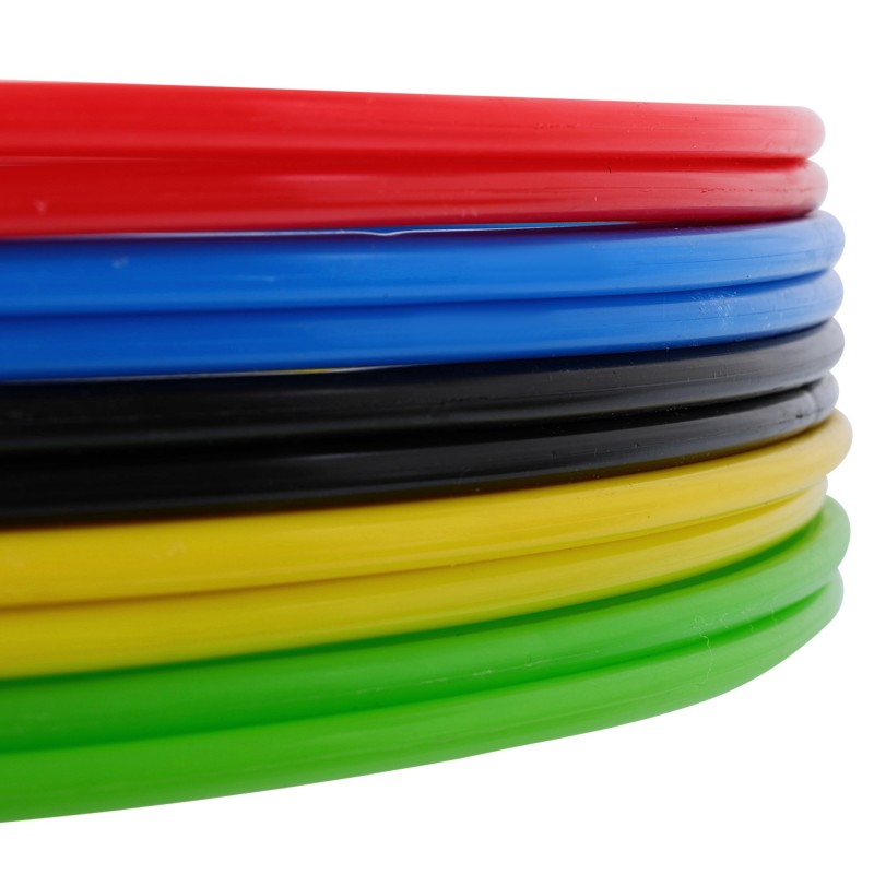 Кільця виготовлені з міцного матеріалу - поліетилену. Кільця можна використовувати на вулиці та в приміщенні, вони не потребують кріплення та фіксації на підлоговому покритті. Кільця не промокають, не вигоряють на сонці. А їхнє яскраве забарвлення дає змогу спортсмену легко орієнтуватися під час проходження координаційної драбини.