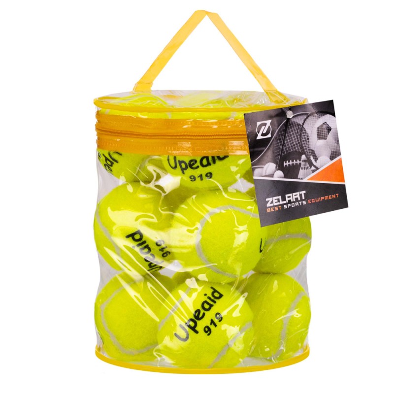 Якщо ви любите на дозвіллі пограти у великий теніс, то вам варто купити набір м'ячів для цієї гри від бренду Upeaid. Набір постачається в зручній поліетиленовій сумці. Усі 12 м'ячів мають однакове забарвлення і виконані з гуми та повсті. Щоб бачити м'яч у польоті було легше, виробник пофарбував його в салатовий колір. Ви легко зможете розгледіти м'яч, що летить на зустріч, у будь-яку погоду.