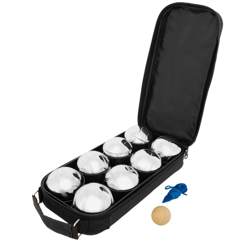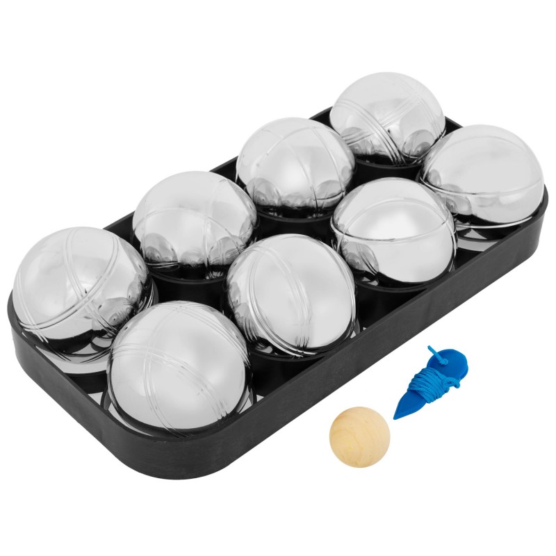 Набір для гри в петанк (бочче) включає 8 металевих кульок, 1 кошонет, шнур для вимірювання відстані та зручну сумку-чохол. Центральним елементом гри є кошонет — невелика кулька діаметром 30 мм і вагою всього 7 грамів. Вона слугує мішенню під час метання великих куль. Гравці діляться на команди та кидають металеві кулі якомога ближче до мішені. Кожна куля має діаметр 73 мм і вагу 730 грамів, її поверхня не гладка, що забезпечує краще зчеплення з поверхнею. Точність і контроль результатів гарантує спеціальний шнур, що дає змогу виміряти відстань від куль до мішені.