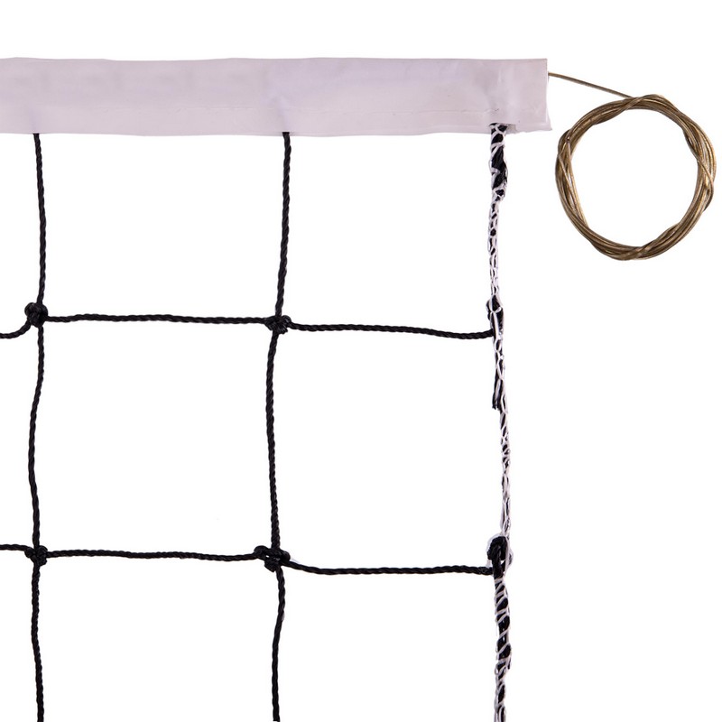 Сітка виготовлена з міцного поліпропілену, який забезпечує високу стійкість до зношування та атмосферних впливів. Її розмір складає 9,5 х 1 метра, що відповідає офіційним розмірам ігрового поля для волейболу. SP-Sport C-5641 має осередки розміром 12x12 сантиметрів, що забезпечує оптимальне співвідношення між міцністю і видимістю гри. Товщина шнура становить 3 міліметри, що робить її надійною та стійкою до механічних впливів. Сітка оснащена металевим тросом, який забезпечує стабільний натяг та утримує її в правильному положенні. Це гарантує, що сітка залишиться натягнутою навіть під час інтенсивних ігор та тренувань.