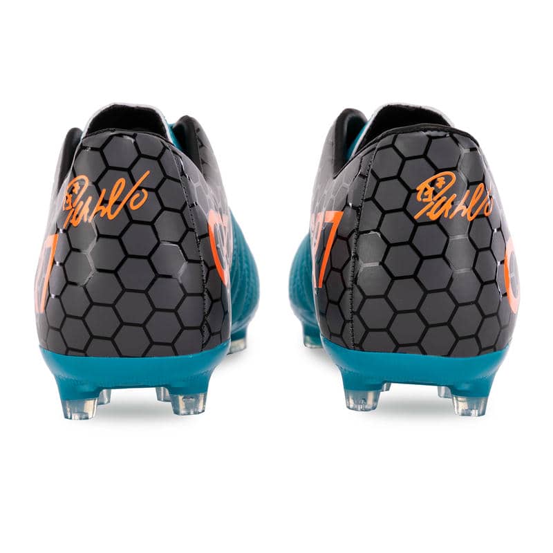 У виробництві шиповок використовуються поліуретан і TPU, для яких характерні тривалий термін служби та висока стійкість до деформацій. Посилений задник та воротникова зона забезпечують фіксовану підтримку, а шнурівка дає змогу відрегулювати посадку, щоб гравець відчував максимальний комфорт.