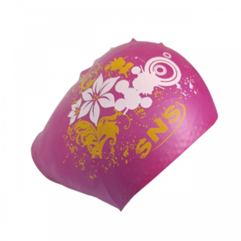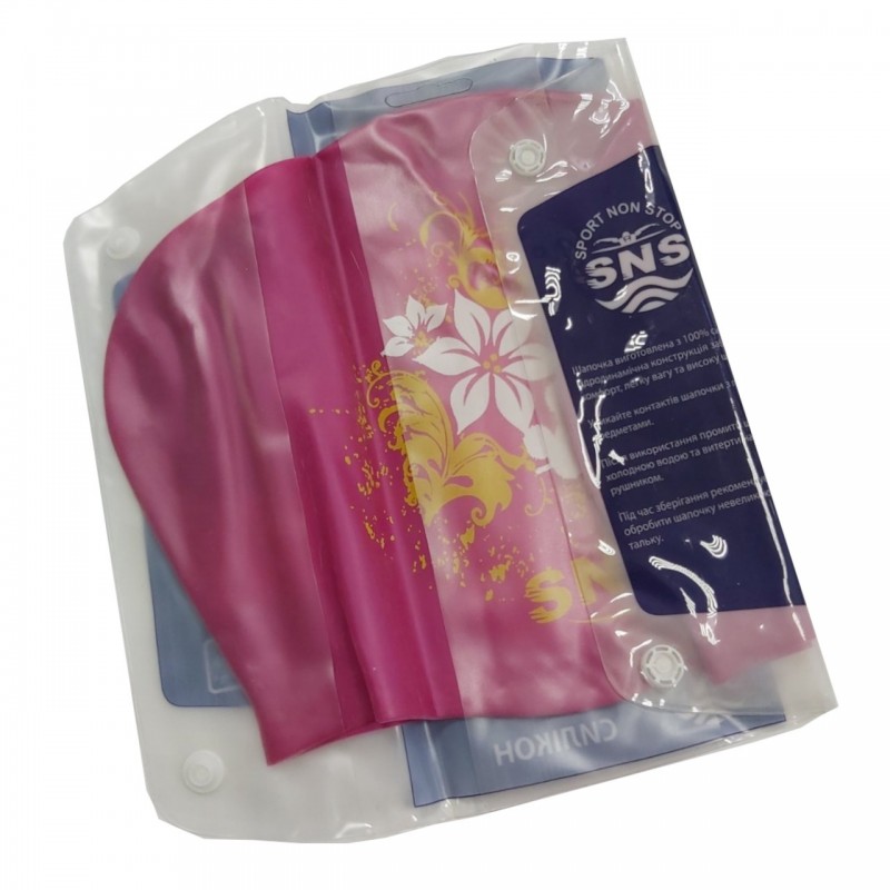 Шапочка для плавання SNS для довгого волосся KW-3МА crimson flowers, рожевий, код: 11341-SNS