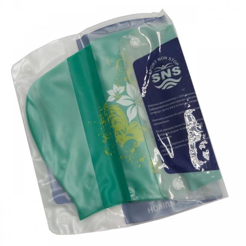 Шапочка для плавання SNS для довгого волосся KW-3З green flowers, зелений, код: 11349-SNS