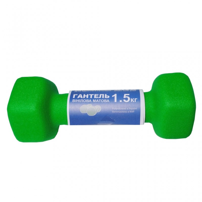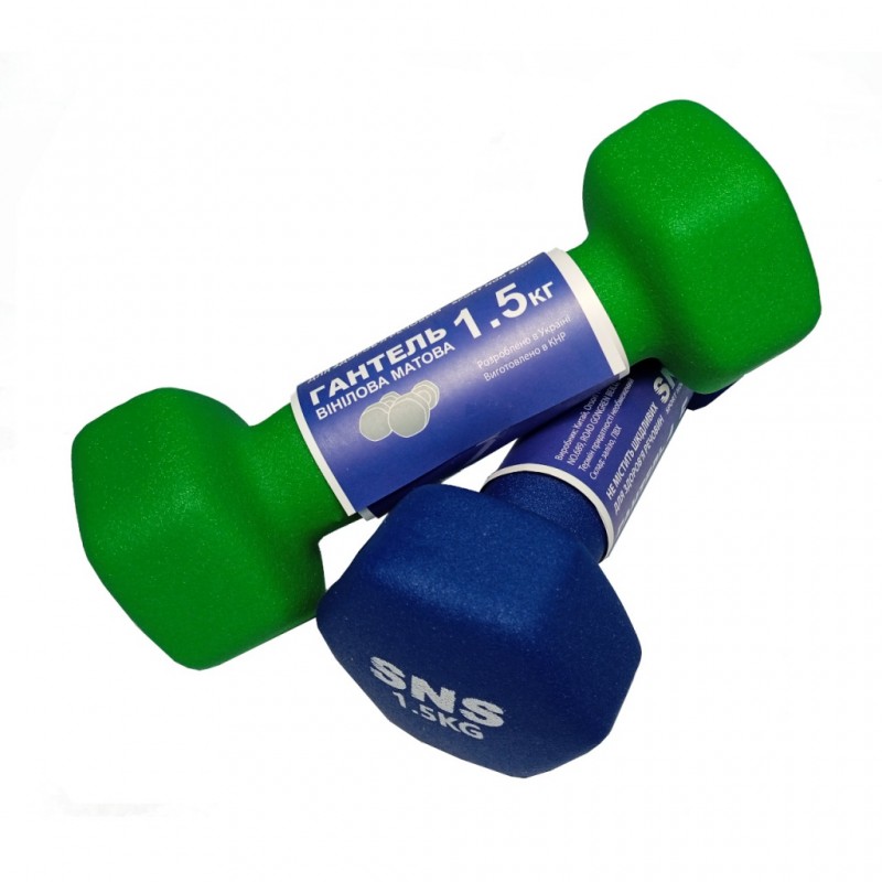 Гантель вінілова Матова SNS 1х1,5 кг, зелений, код: 12308-SNS
