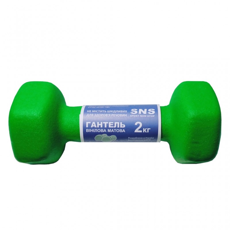 Гантель вінілова Матова SNS 1х2 кг, зелений, код: 12311-SNS