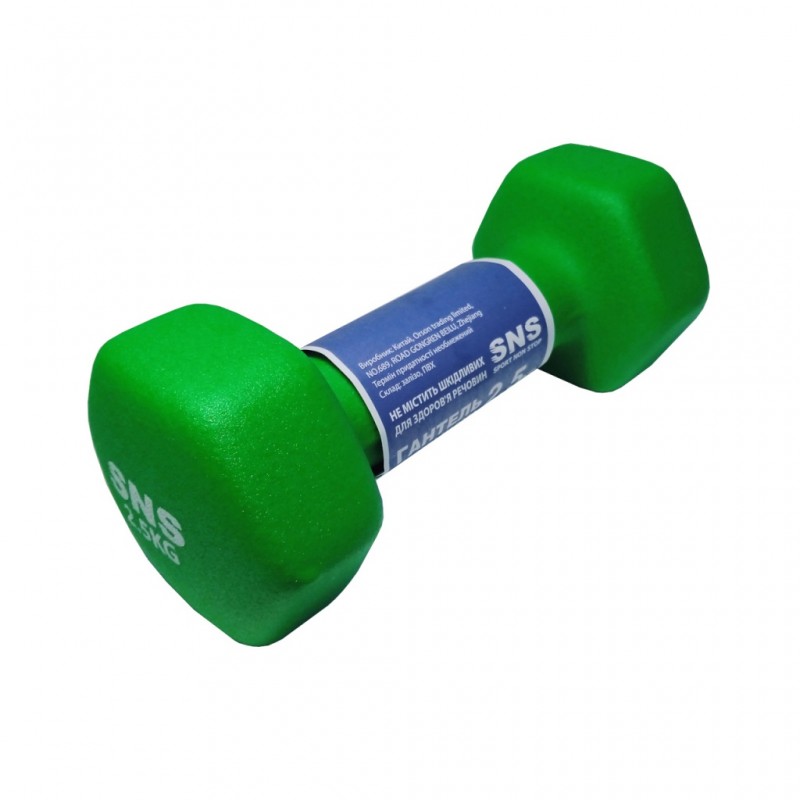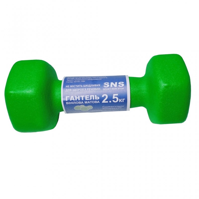 Гантель вінілова Матова SNS 1х2,5 кг, зелений, код: 12314-SNS