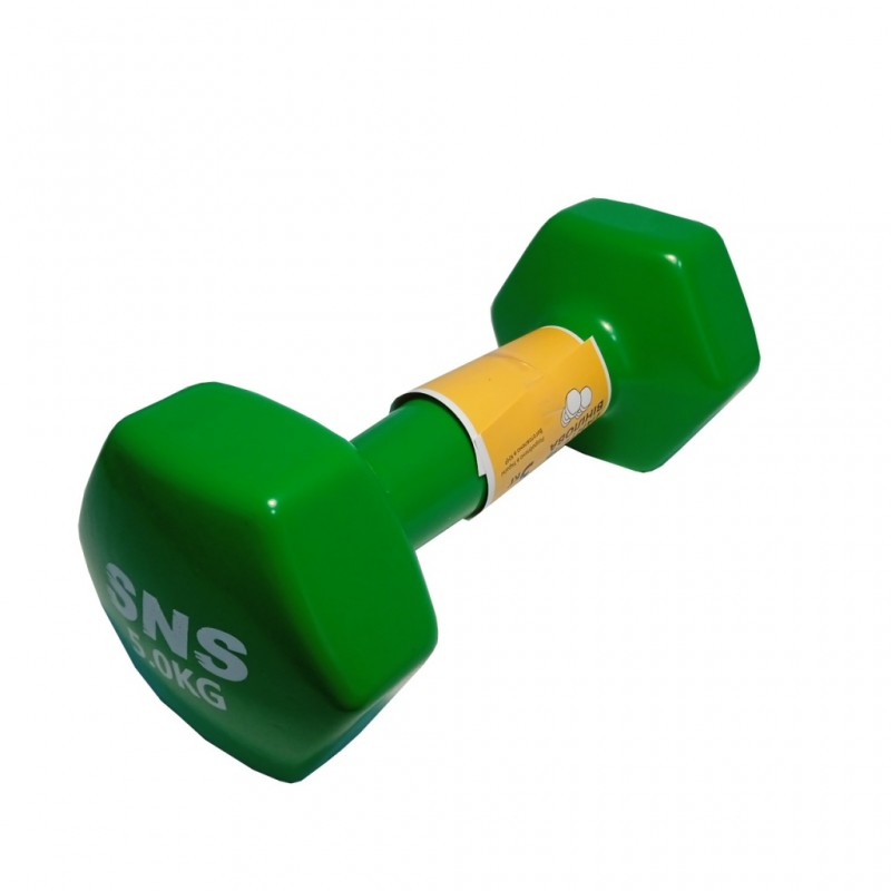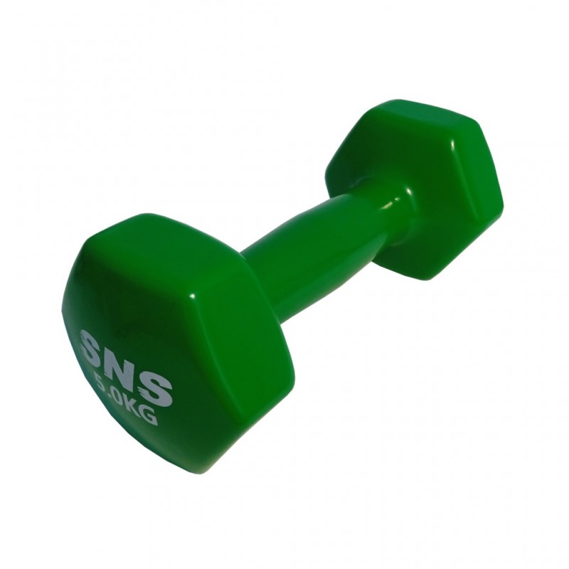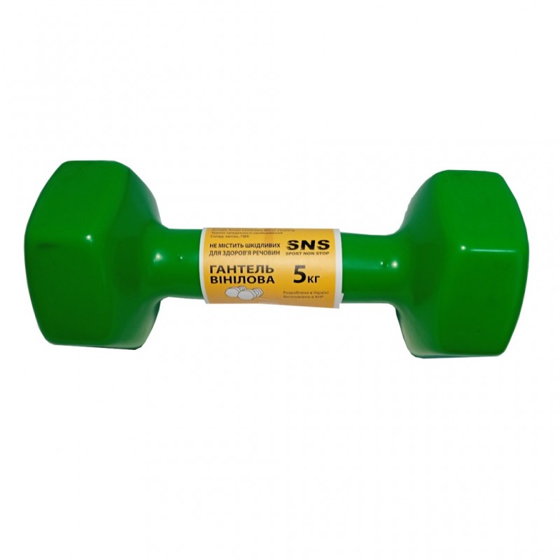 Гантель вінілова SNS 1х5 кг, зелений, код: 12355-SNS