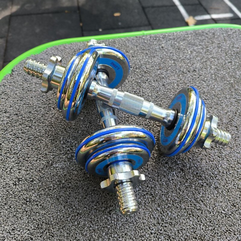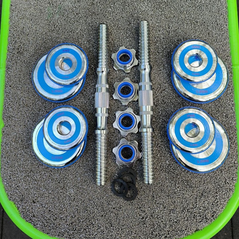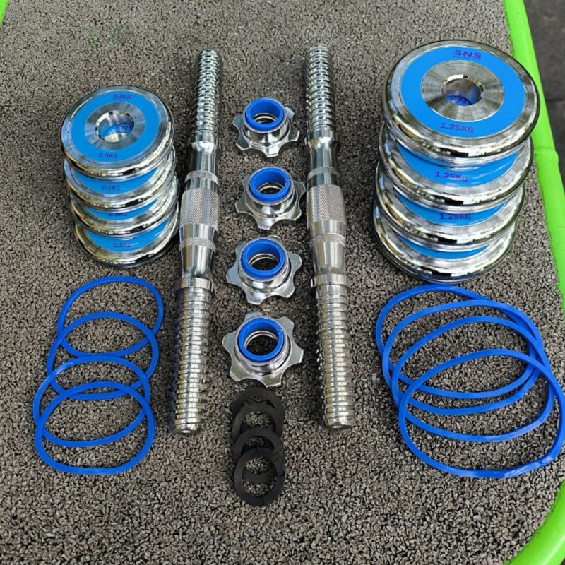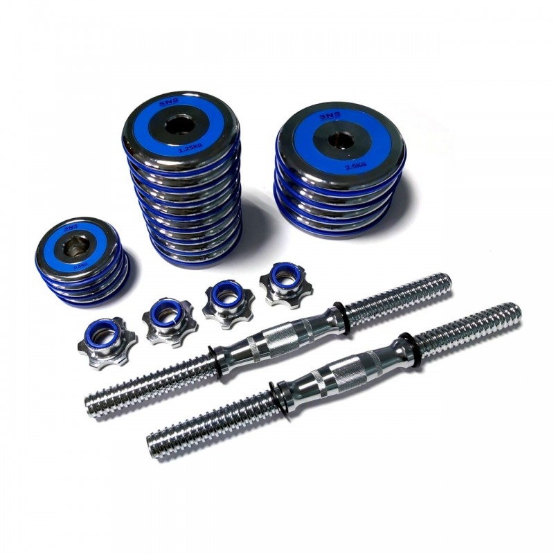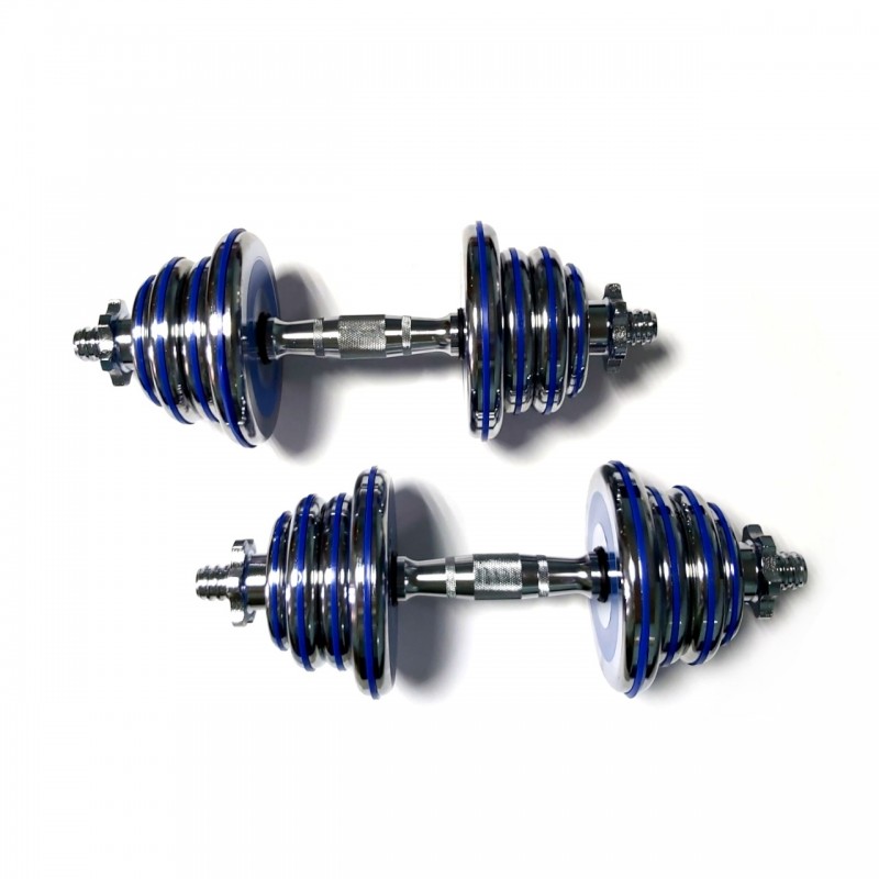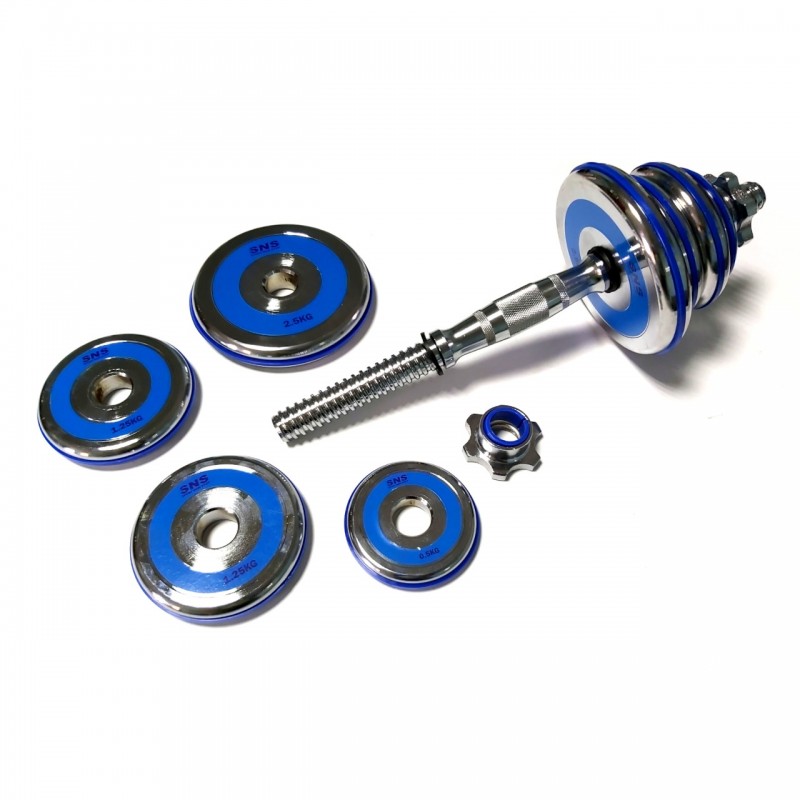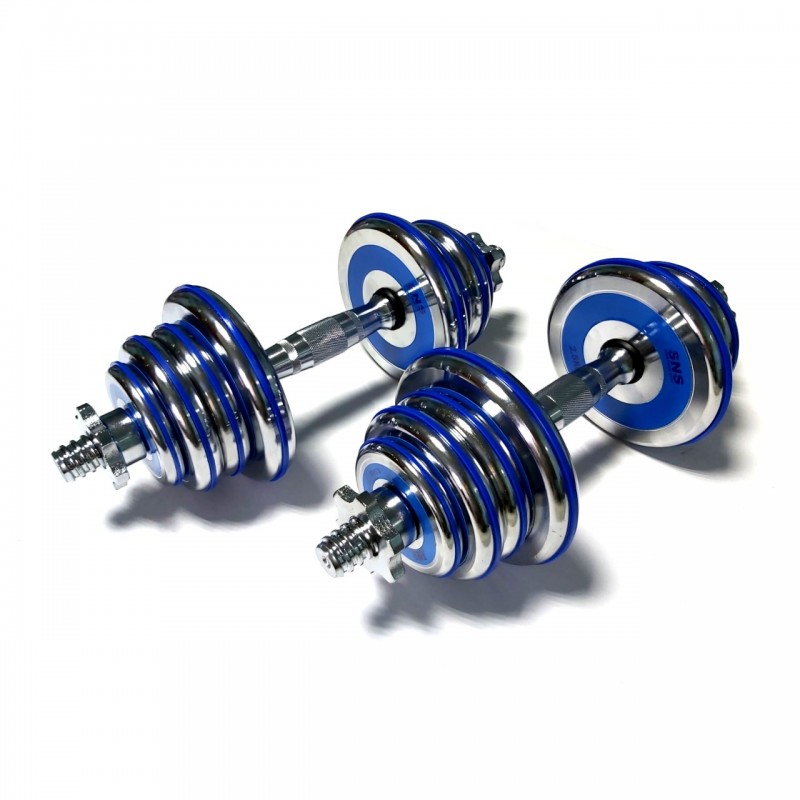 Збірні хромовані гантелі SNS HADD25 2х12,5 кг з блакитними вставками, код: 12855-SNS