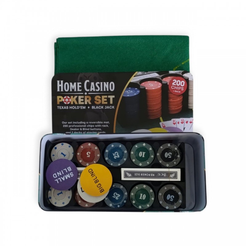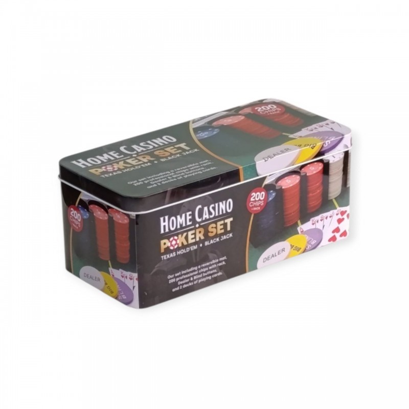 Набір для гри в покер у металевій коробці SNS 6620С 200 фішок з сукном, код: 18268-SNS