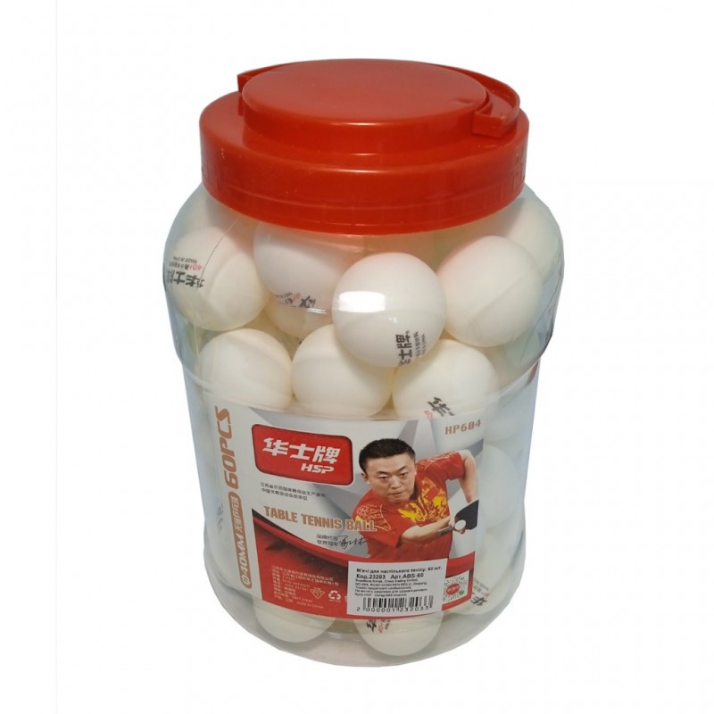 М"ячі для настільного тенісу HSP ABS-60 60 шт, білий, код: 23203-SNS