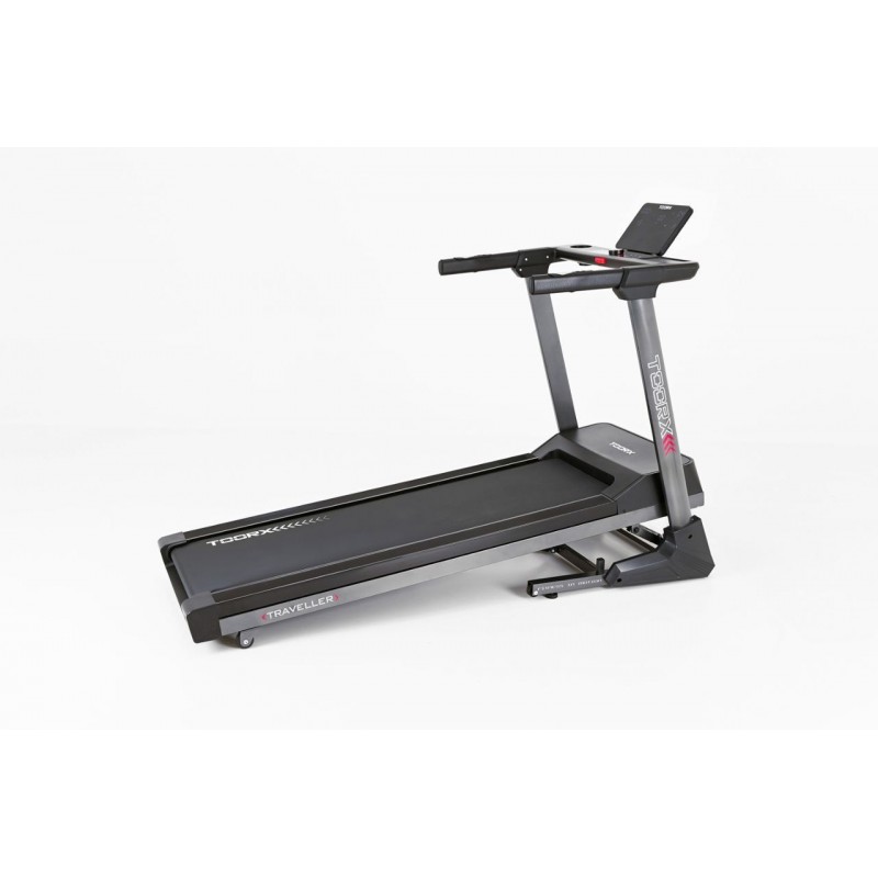 Бігова доріжка Toorx Traveller – поєднує елегантний сучасний дизайн з високими технічними показниками, що робить її відмінним рішенням для інтенсивних домашніх тренувань. Завдяки потужному двигуну, електричному регулюванню нахилу та професійній амортизаційній системі, ця модель забезпечує комфортний біг на будь‑якому рівні підготовки.