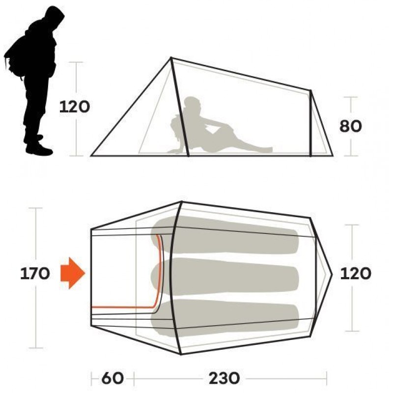 - Комплектація: Внутрішній намет, зовнішній тент, дуги, кілочки, відтяжки, інструкція, ремкомплект, сумка-чохол