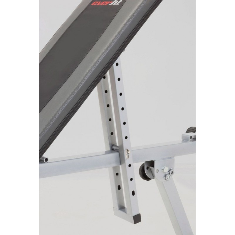 - Універсальність: Спинка регулюється у 10 положеннях (0-80°) та може досягати 90° при нахилі сидіння, що дозволяє виконувати різні варіації жиму, скручувань і тягових рухів.