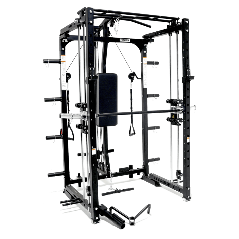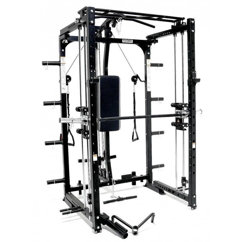 Toorx All-in-One ASX-3000 — це компактна силова станція 4-в-1, яка поєднує в собі машину Сміта, кросовер, верхню тягу та силову раму. Завдяки своїй складній конструкції, вона ідеально підходить для домашнього використання, забезпечуючи широкий спектр можливостей для тренувань.