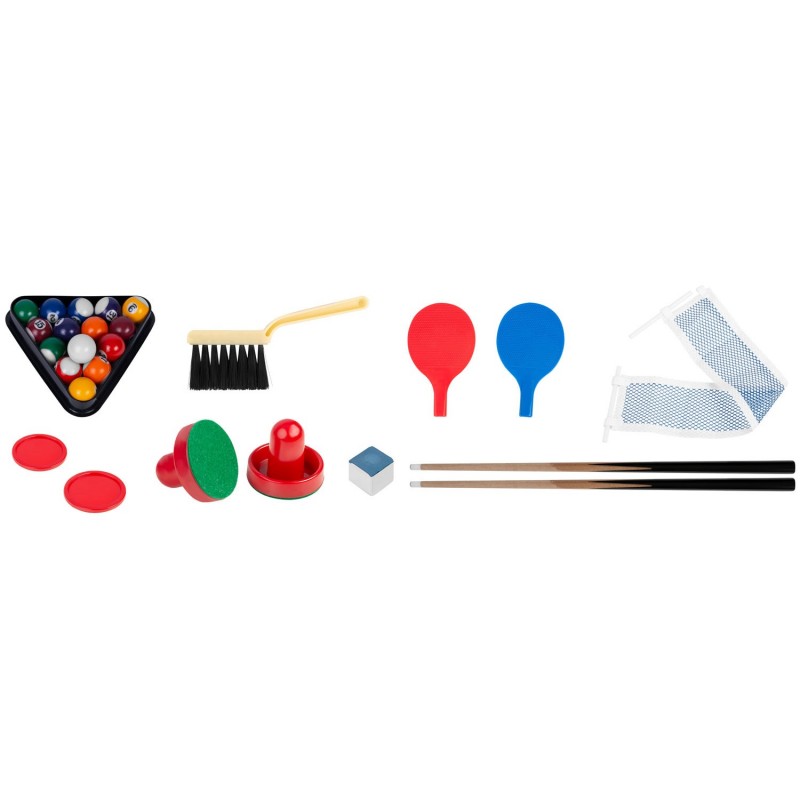 Більярдний стіл! Основа столу 4 в 1 - більярдний. У комплекті: трикутник, 16 куль діаметром приблизно 25 мм, два киї довжиною 64,5 см, дві крейди, щітка для чищення.