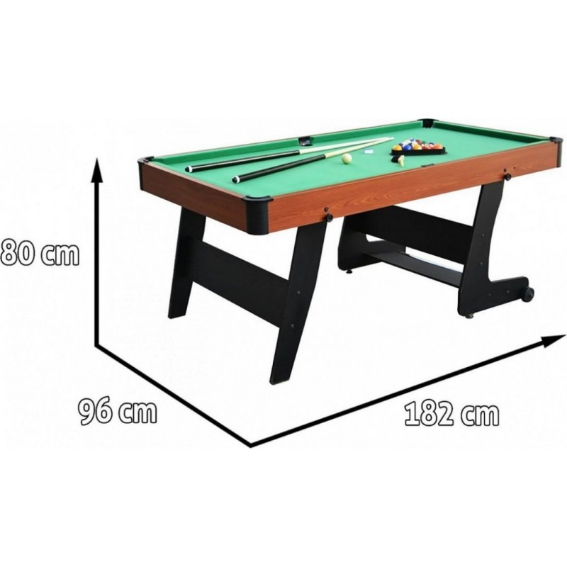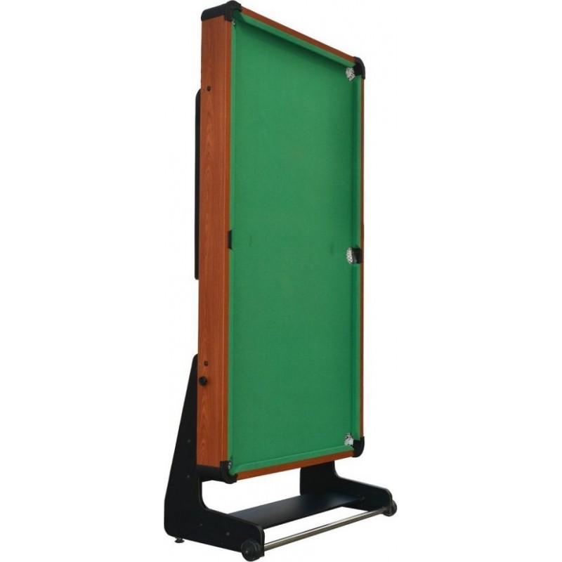 - стіл має функцію вертикального складання - завдяки чому стіл займає дуже мало місця (більярдний стіл має замок для стабілізації),