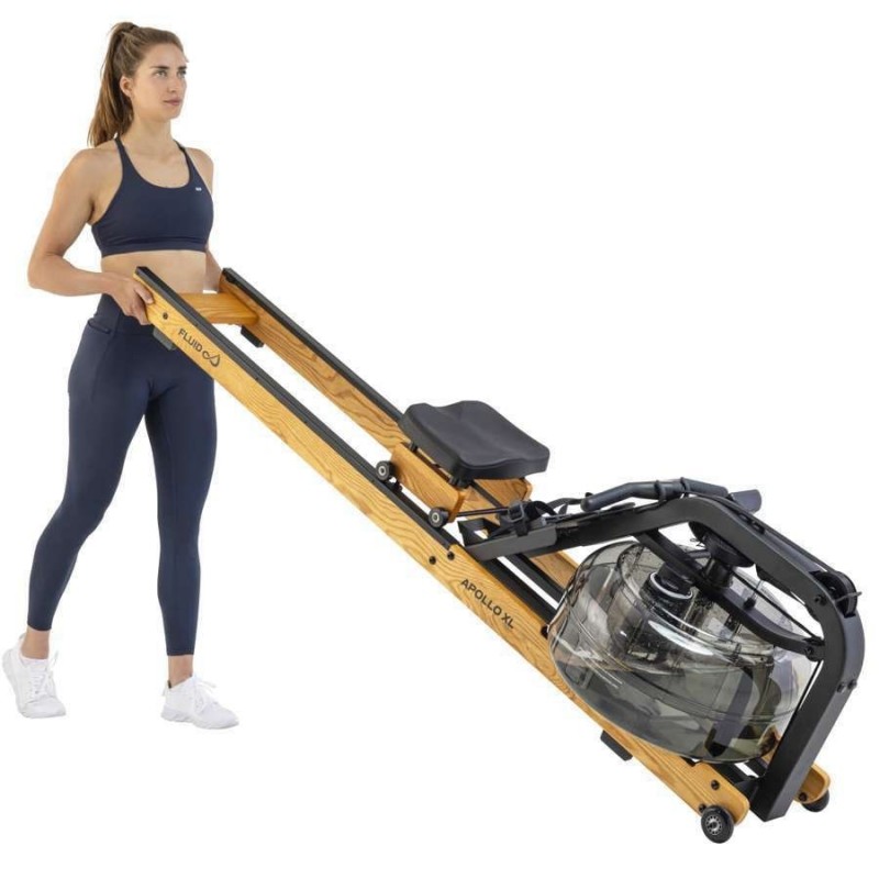 Відчуйте неперевершену якість гребного тренажера Fluid Rower з регульованим опором. Apollo XL має надзвичайно великий резервуар для води з +65% більшим опором. Він поєднує міцність ясена з міцністю сталі та має натуральний буковий колір.