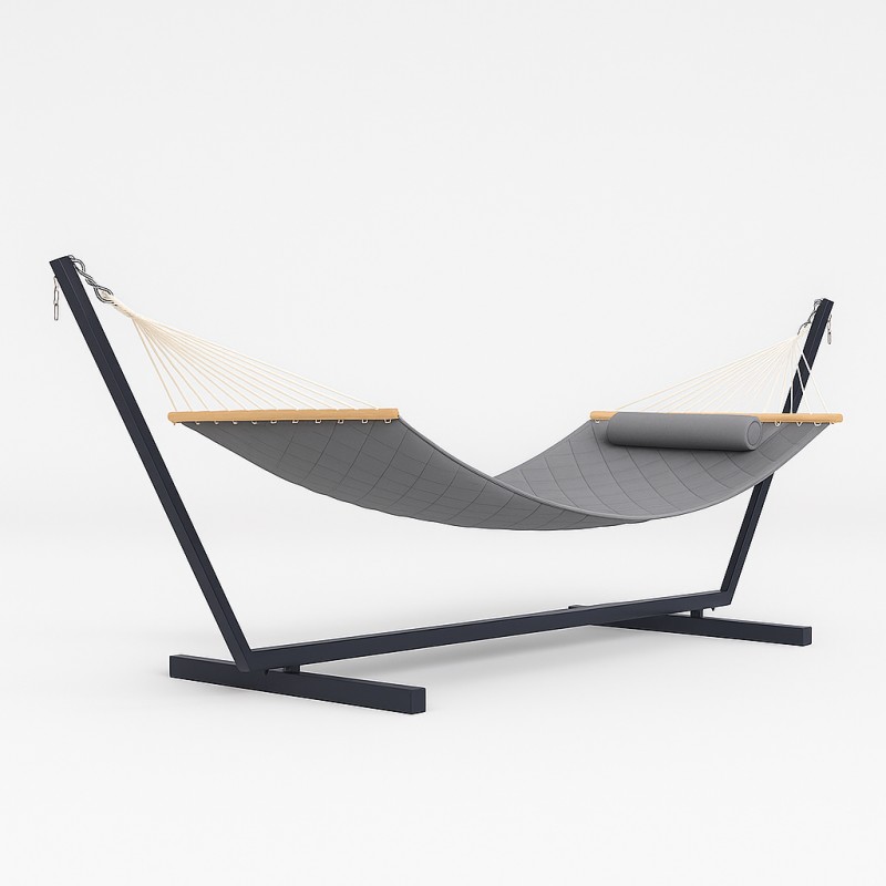 Стійка для гамака 50х50 + Двомісний гамак з планками WCG Soft XXL 2000x1400 мм, сірий, код: W-5050H05-4-IF
