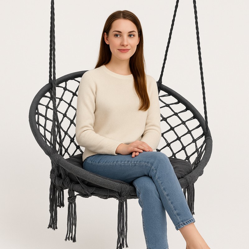 Відкрийте новий рівень комфорту з підвісною кріслом-гойдалкою WCG — ідеальне рішення для дому, балкона, саду чи лаунж-зони. М’яка подушка, приємний текстиль, декоративна бахрома та витончений дизайн створюють атмосферу спокою й затишку, яку хочеться дарувати собі щодня.