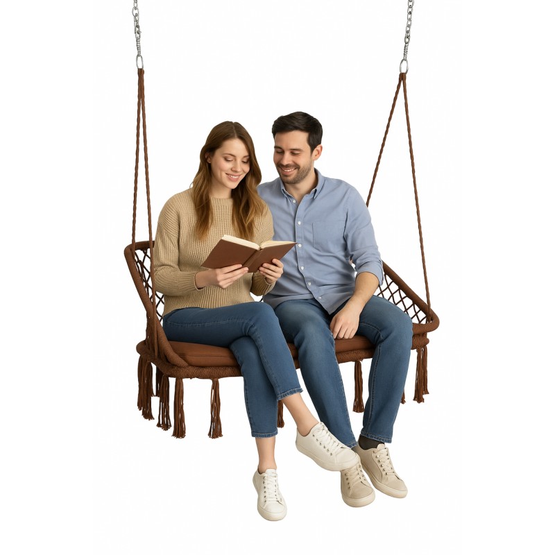 Крісло-гойдалка підвісна двомісна WCG 120 см + м’яка подушка, коричневий, код: QNSW09BR-IF