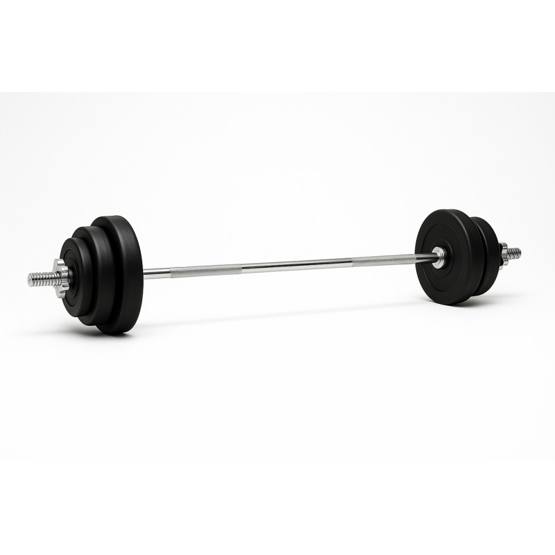 Гриф 140 см вагою 6,5 кг забезпечує зручне хватання та підходить для виконання базових силових вправ: жим лежачи, присідання, тяга. Він витримує максимальне навантаження до 120 кг, що робить набір надійним і довговічним.
