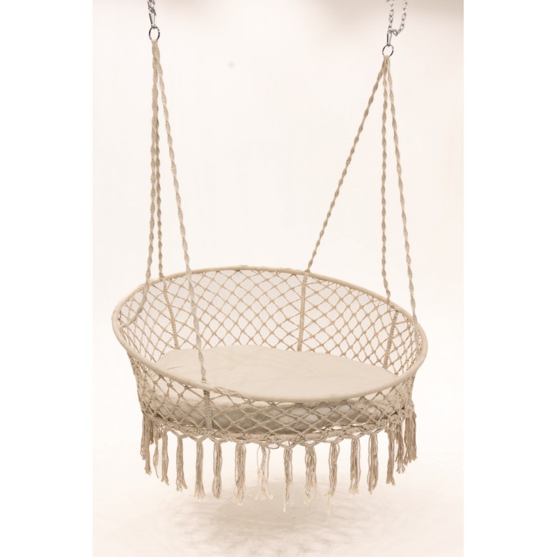 Витримане в стилі бохо, це підвісне крісло прикрасить терасу, спальню, балкон чи сад. Завдяки декоративній бахромі, м’яким подушкам і стильному плетінню, гойдалка виглядає затишно та естетично в будь-якому просторі — як у приміщенні, так і на вулиці.