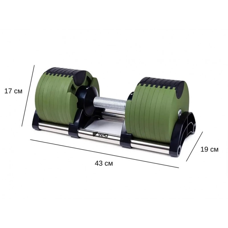 Регульована гантеля WCG 24 кг (колір хакі) – 12 рівнів ваги від 2 до 24 кг