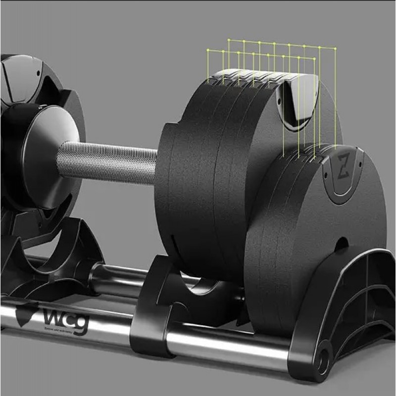Регульована гантеля WCG економить ваш простір і гроші – замість кількох пар гантель достатньо однієї. Ви швидко підлаштовуєте навантаження під вправу та рівень підготовки, не витрачаючи час на перекручування замків.