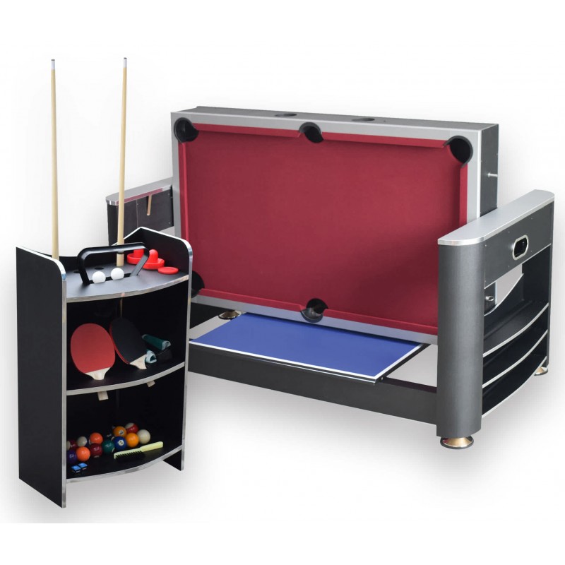Отримайте три чудові ігри в одному компактному комплекті з цим вражаючим багатофункціональним ігровим столом. Onix пропонує все: класичний більярд, захопливий аерохокей та динамічний настільний теніс. Легко перемикайтеся між іграми завдяки простій обертовій ігровій поверхні та знімній кришці для настільного тенісу. Ідеальне рішення для активних дітей зі швидко змінним настроєм. Прості з’єднувальні штифти надійно фіксують стіл, забезпечуючи безпеку під час гри. У комплект входять усі необхідні аксесуари: кулі та кийки для більярду, ракетки й м’ячі для настільного тенісу, шайби та ключки для аерохокею. Всі аксесуари можна зберігати впорядковано завдяки вбудованій, кольорово підібраній стійці-органайзеру.