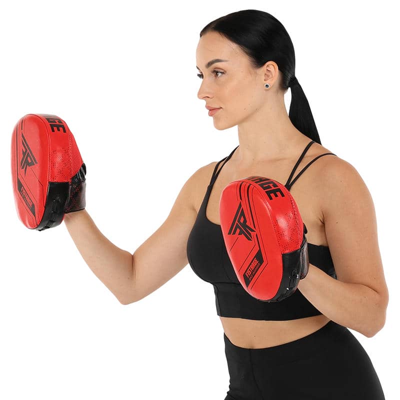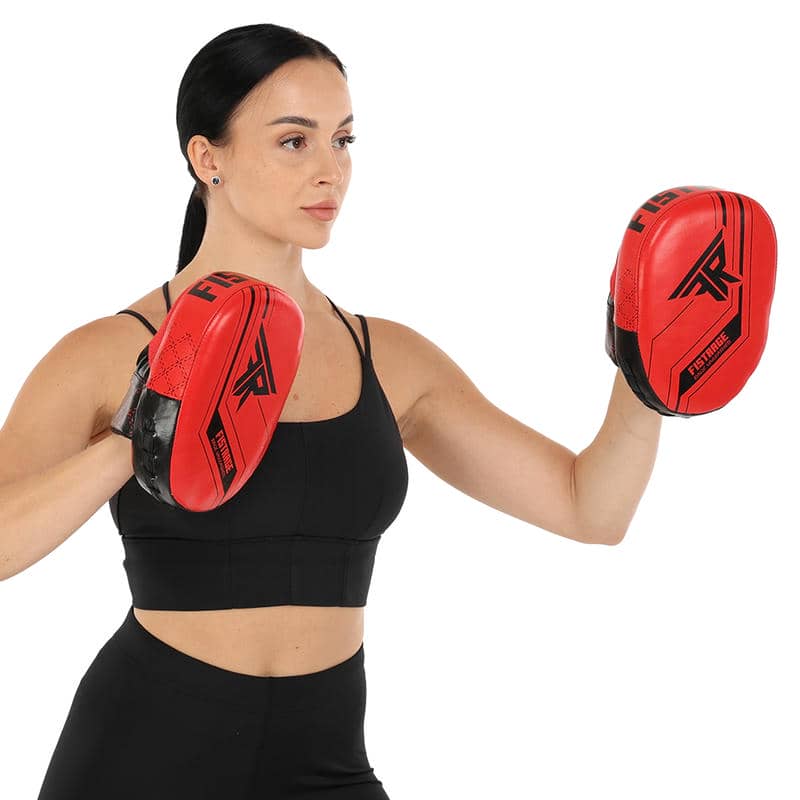 Лапа боксерська вигнута тренувальна шкіра Fistrage 230x170x60 мм, 2штуки, червоний, код: VL-4308_R