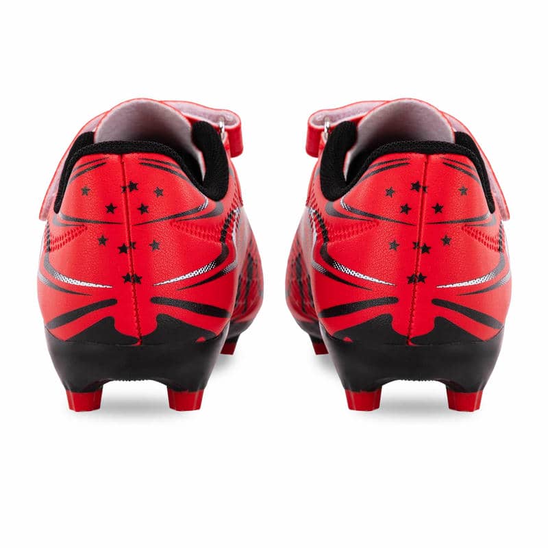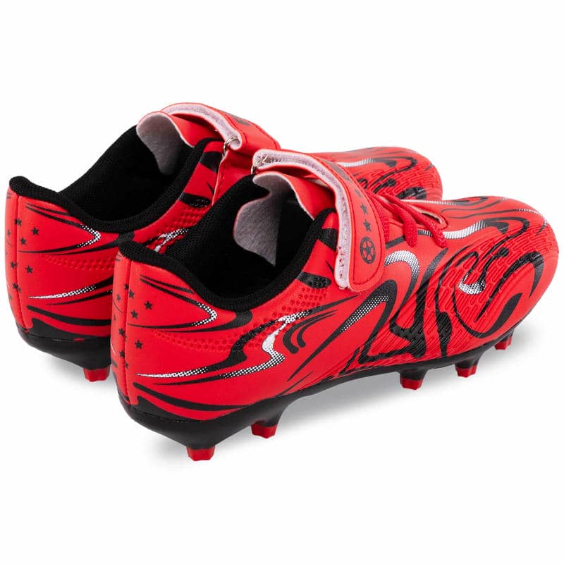 Бутси для дітей 616B - це модель із яскравим дизайном і гарною підтримкою, спроєктована для високої продуктивності та безпеки в грі. Вони довговічні, стійкі до вологи та легкі в догляді. Регульована та міцна застібка-липучка в парі з класичною шнурівкою забезпечують щільну, природну посадку, даючи змогу юному гравцеві виконувати різкі маневри. Сміливо відштовхуватися, розганятися й повертати дає змогу особлива конструкція п'яти, що забезпечує фіксовану підтримку, запобігає розтягненню і пом'якшує удари.