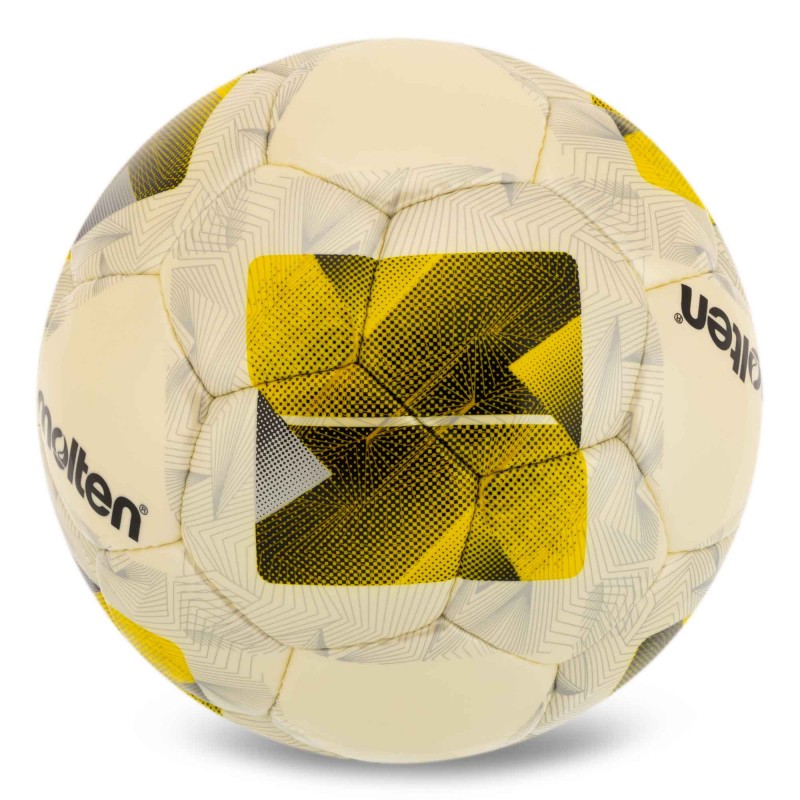 Оригінальний футбольний м'яч від бренду Molten призначений для гри у футбол на натуральному або штучному газоні. М'яч виготовлений із високоякісного матеріалу. Для виготовлення покришки використовується поліуретан. Цей синтетичний матеріал за властивостями дуже нагадує шкіру, він довговічний і абсолютно не вбирає вологу. Нульове вбирання вологи сприяє збереженню первісної форми м'яча і його ваги в будь-яку погоду. Покришка складається з 32 панелей, які з'єднуються між собою за допомогою нейлонової нитки вручну. Між покришкою і камерою розташовуються тканинні підкладкові шари. Камера виготовлена з бутилу і добре утримує повітря.
