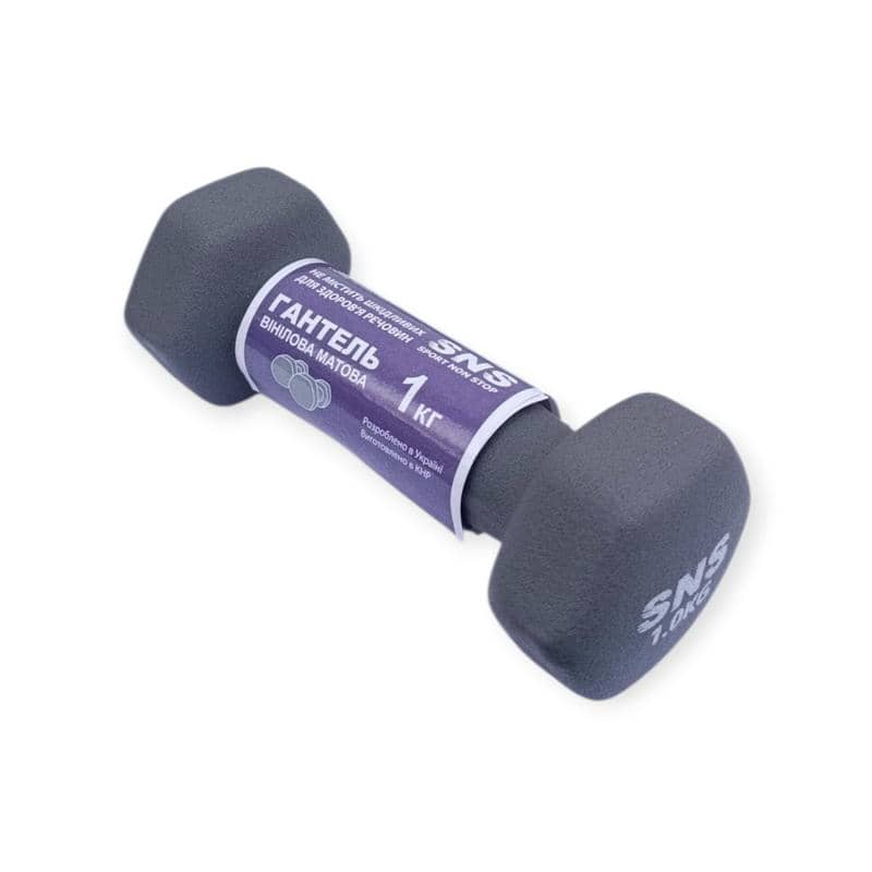 Гантель вінілова матова SNS 1х1 кг, сірий, код: 28209-SNS