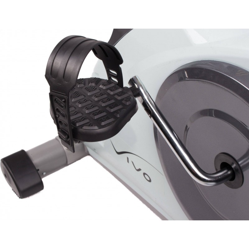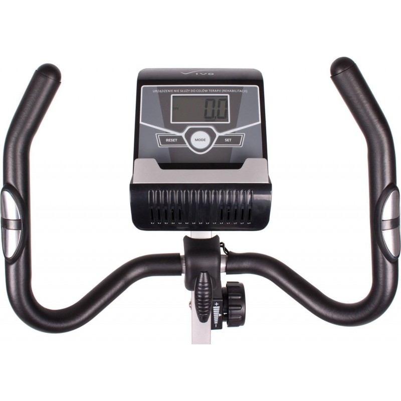 в комфорті власного дому. Це одне з найпопулярніших і найчастіше вибираних споряджень, що забезпечує повністю безпечну фізичну активність, незалежно від віку або рівня фізичної підготовки користувача. Завдяки можливості до восьми рівнів регулювання опору, велосипед підходить як для інтенсивних кардіотренувань, так і для підтримки процесу реабілітації. Крім того, він також сприяє ефективному спалюванню жиру, зміцненню м'язів, покращенню загального стану та працездатності організму. Велотренажер Vivo виготовлений з високоякісних матеріалів, які гарантують високу міцність і міцність всієї конструкції. Має зручне сидіння, яке регулюється по вертикалі і горизонталі, вбудований пульсометр, регульоване кермо, спеціальну поличку для смартфона або планшета і чіткий РК-дисплей. Це дозволяє постійно контролювати найважливіші параметри під час тренування, тобто час, швидкість, відстань або спалені калорії. Маховик приводиться в рух ременем, що забезпечує тиху та плавну роботу, а завдяки транспортним колесам зберігання та переміщення велосипеда надзвичайно просте та безпроблемне.