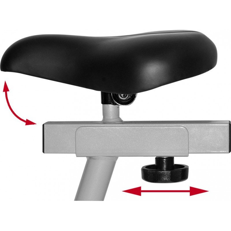 За рахунок пульсометру, вбудованому в кермо, завжди можна стежити за своїм пульсом. Вбудований комп'ютер з LED-дисплеєм чітко показує всі важливі значення, такі як відстань, час, швидкість, витрата калорій і частота серцевих скорочень. Також можна ввести особисті граничні значення. Нековзні педалі з окремим ременем безпеки забезпечують стабільне положення стопи та плавну їзду. А