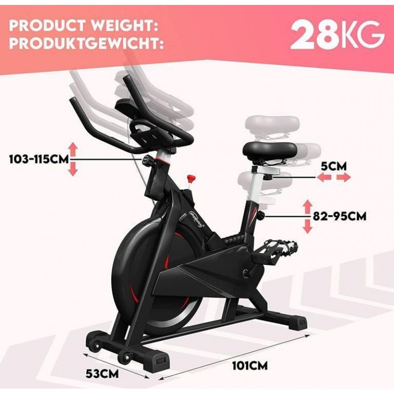 З нашим стаціонарним велотренажером вести здоровий спосіб життя набагато легше. Це швидкісне колесо підвищує фізичну витривалість, зміцнює м'язи і покращує загальне самопочуття. Ідеальний швидкісний велосипед для будь-якого рівня фізичної підготовки з практичним тримачем для пляшок і ремінцями для педалей для безпечного тренування. РК-дисплей велосипеда показує час, швидкість, відстань, спалені калорії, пульс, а також має одометр; акумулятор не входить. Велотренажер забезпечує ефективне тренування на витривалість для користувачів з максимальною вагою 120 кг; Маховик 8 кг, який можна обертати в обидві сторони. Датчик пульсу розташований на кермі.