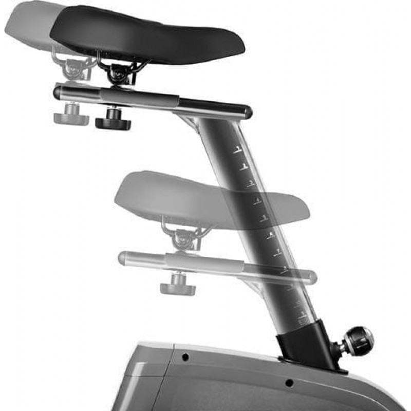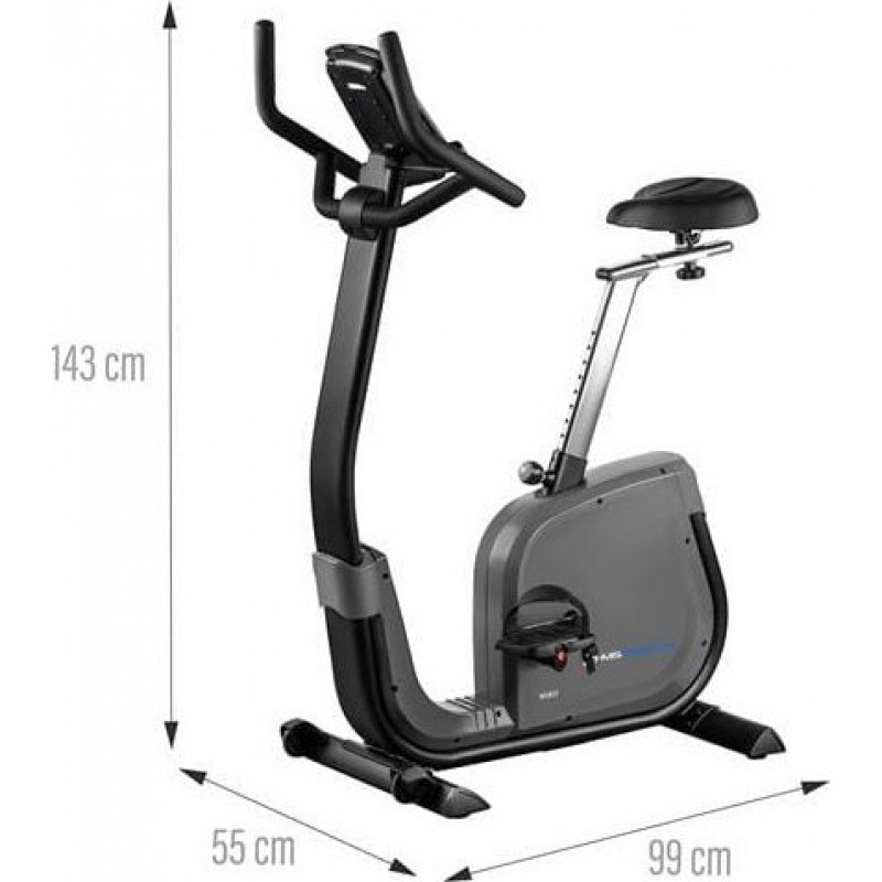 Зручний РК-дисплей має широкий спектр функцій для моніторингу прогресу тренувань. Можна відстежувати найважливіші параметри, такі як: час, відстань, швидкість, спалені калорії, пульс, ват, оберти на хвилину, програми HRC та вимірювання жирової тканини. Кожен користувач має можливість створити індивідуальний профіль тренувань на основі статі, віку, зросту та ваги, що дозволяє ще точніше підібрати план тренувань до особистих цілей та можливостей. Велотренажер пропонує 19 тренувальних програм, у тому числі 12 базових, що дозволяє проводити різноманітні та мотивуючі тренування. Велотренажер оснащений транспортувальними колесами, які полегшують його переміщення, що робить його надзвичайно практичним рішенням навіть в обмеженому просторі. Профільований корпус дозволяє зручно сідати на велотренажер.
