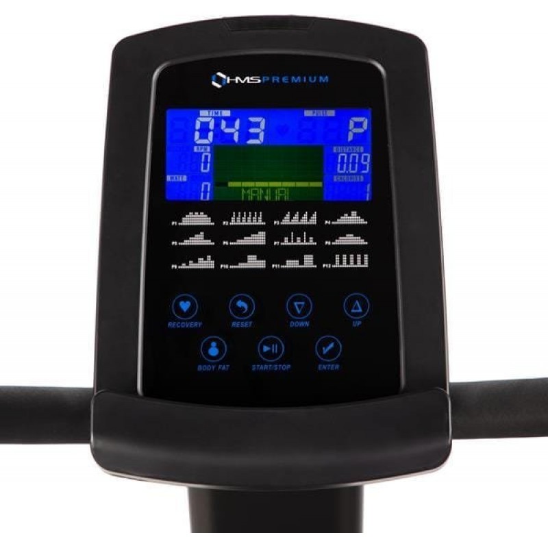 - РК-дисплей: час, відстань, швидкість, калорії, пульс, потужність, швидкість, обертання HRС, контроль серцевого ритму, вимірювання жирової тканини